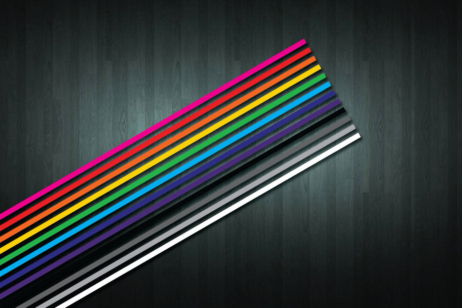We make custom pin striping rolls to order in almost any width, and in a range of 35 colours. The maximum length is limited to 1600mm, due to our production method.