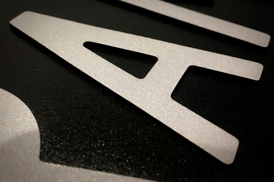 - The letters have a machined pattern on their exposed metal surface